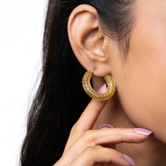 Classic Textured Anti-Tarnish Hoop Earrings