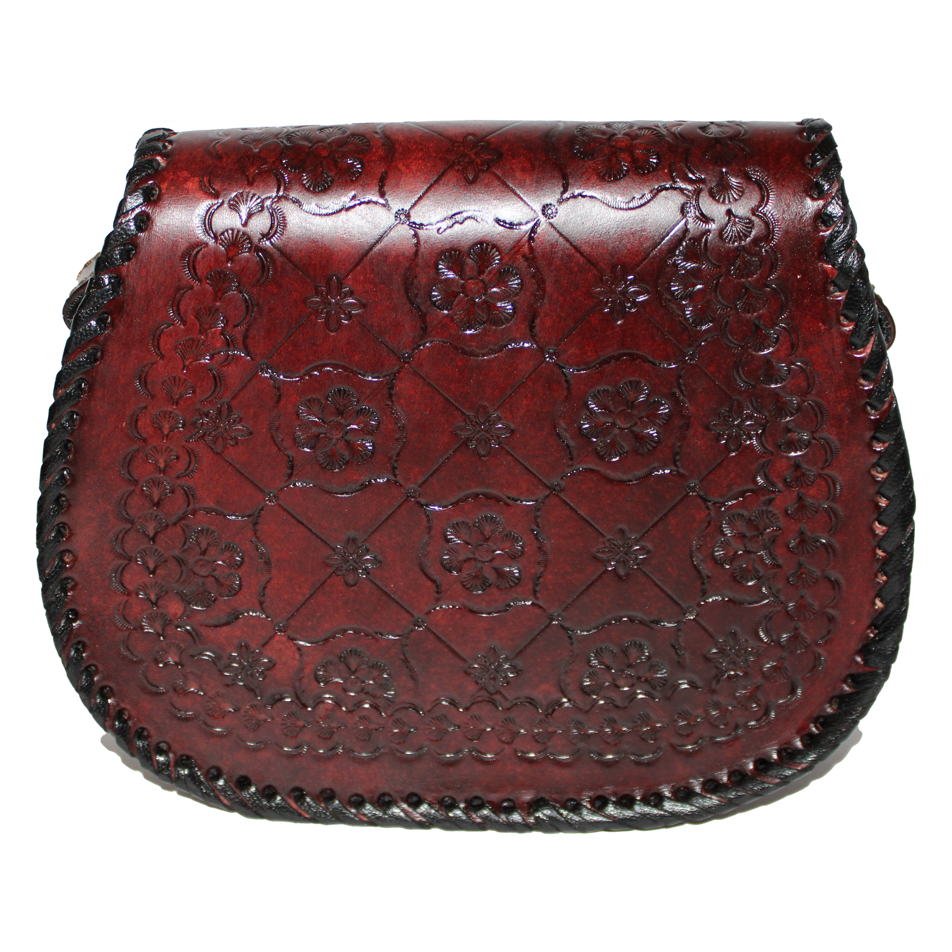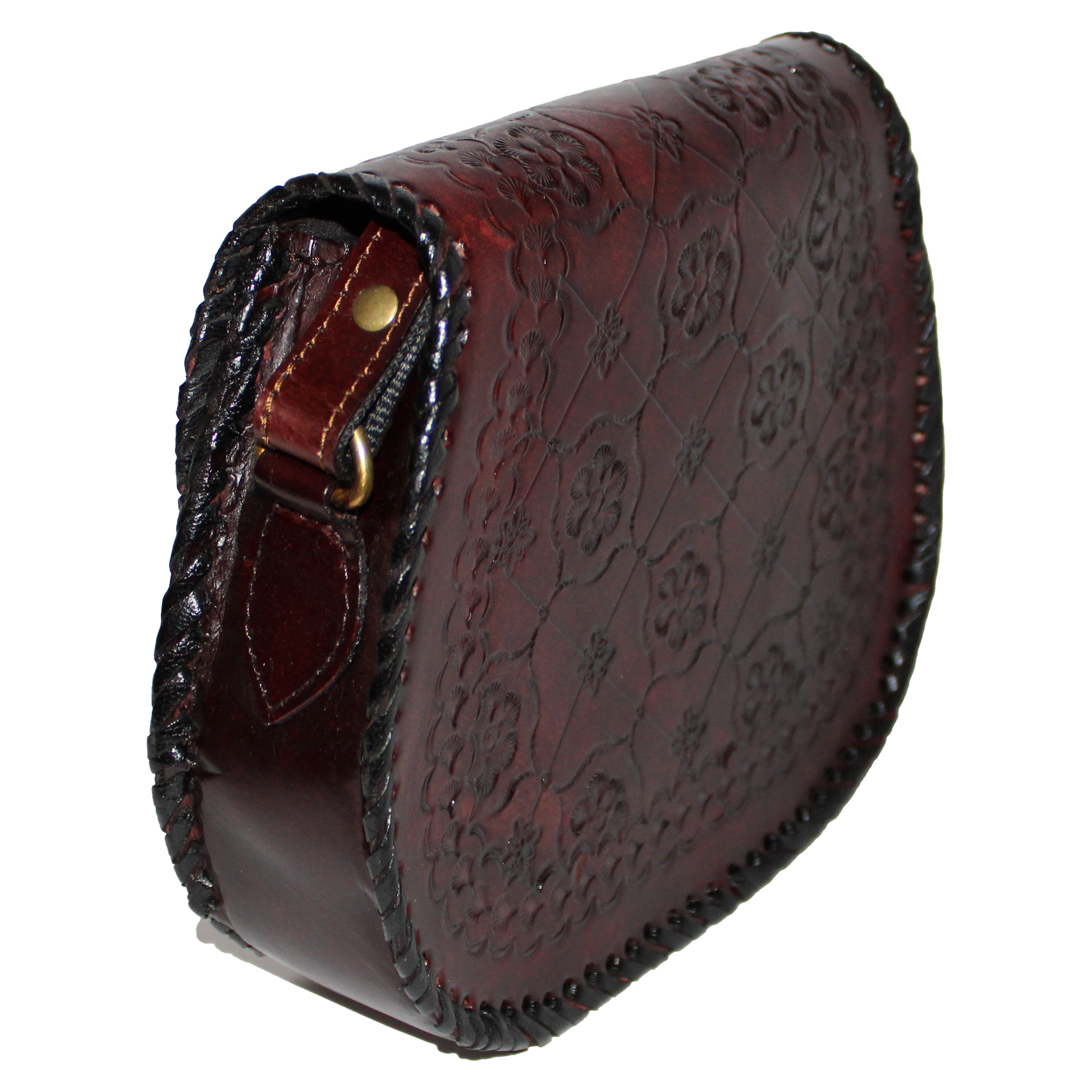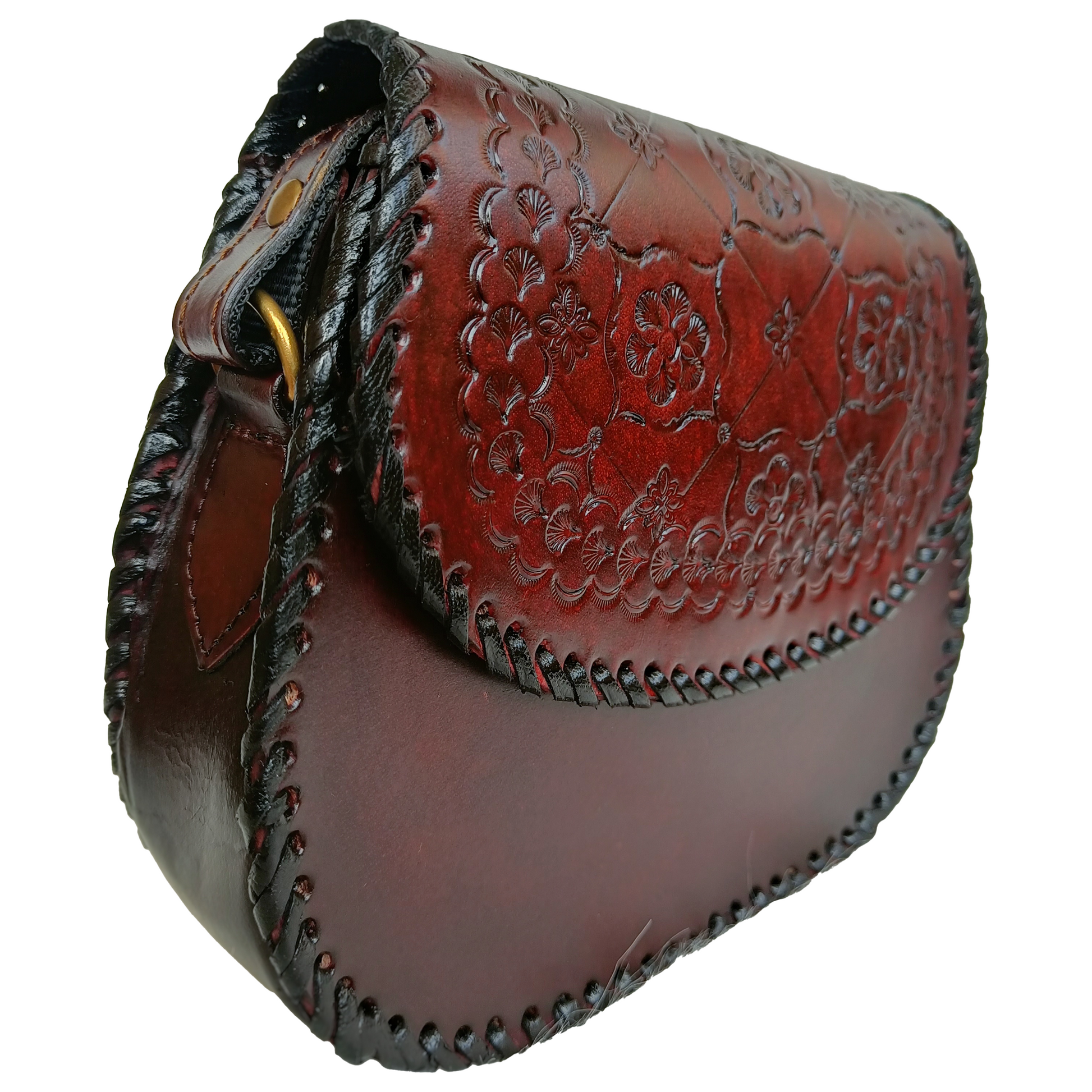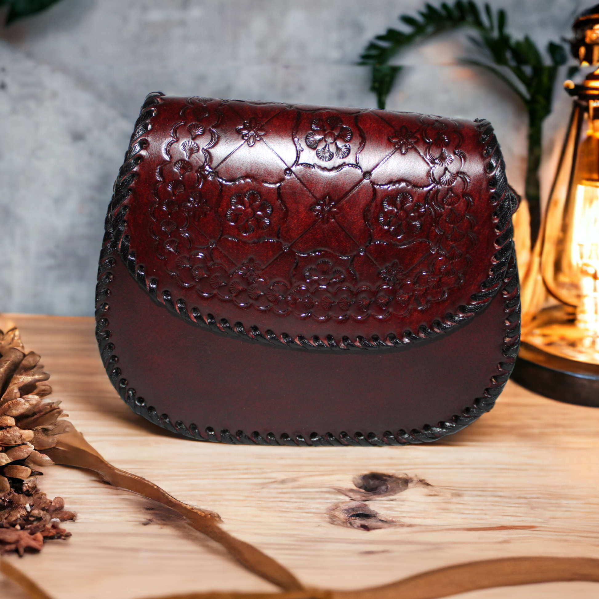 Burgundy Crossbody Handcarved Leather Sling Bag