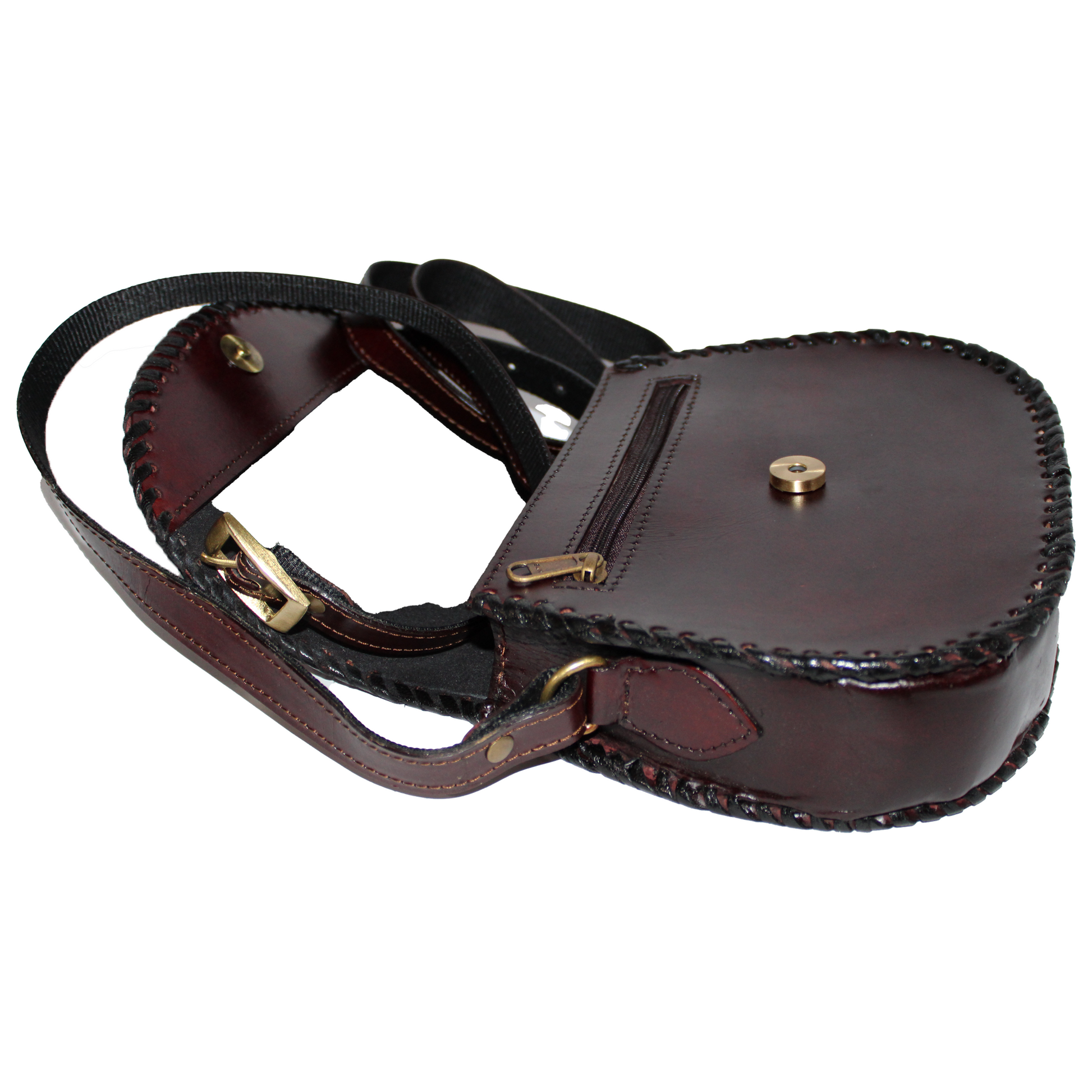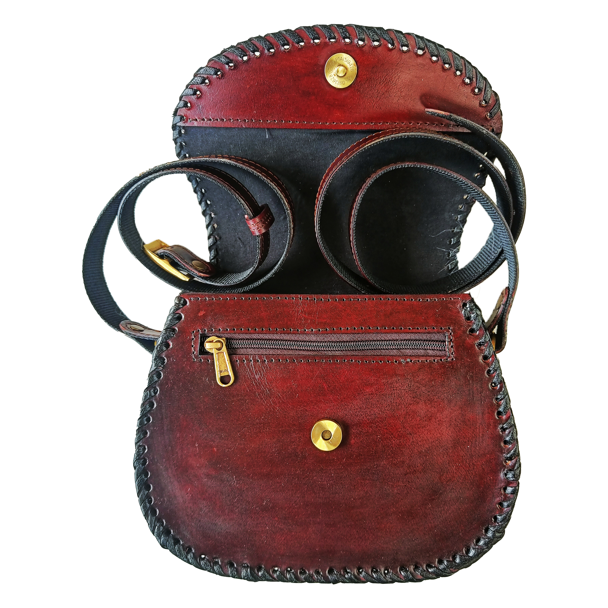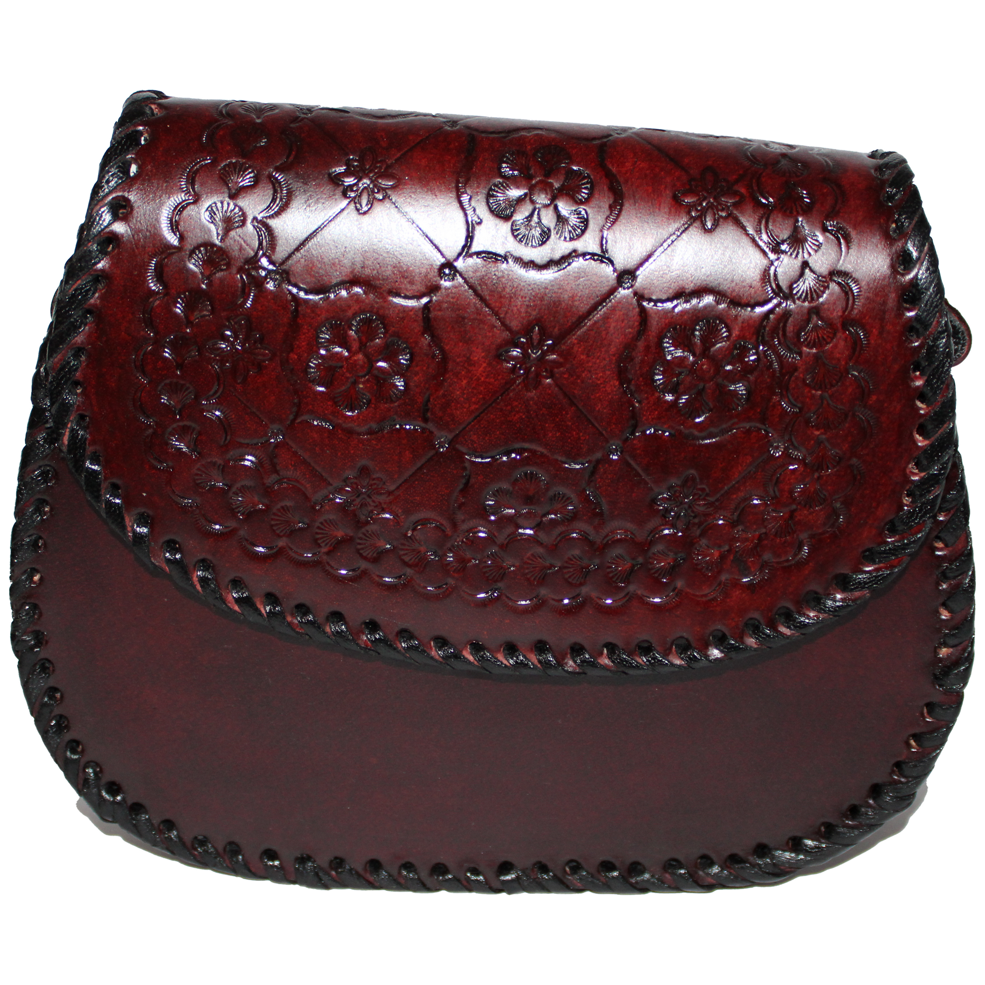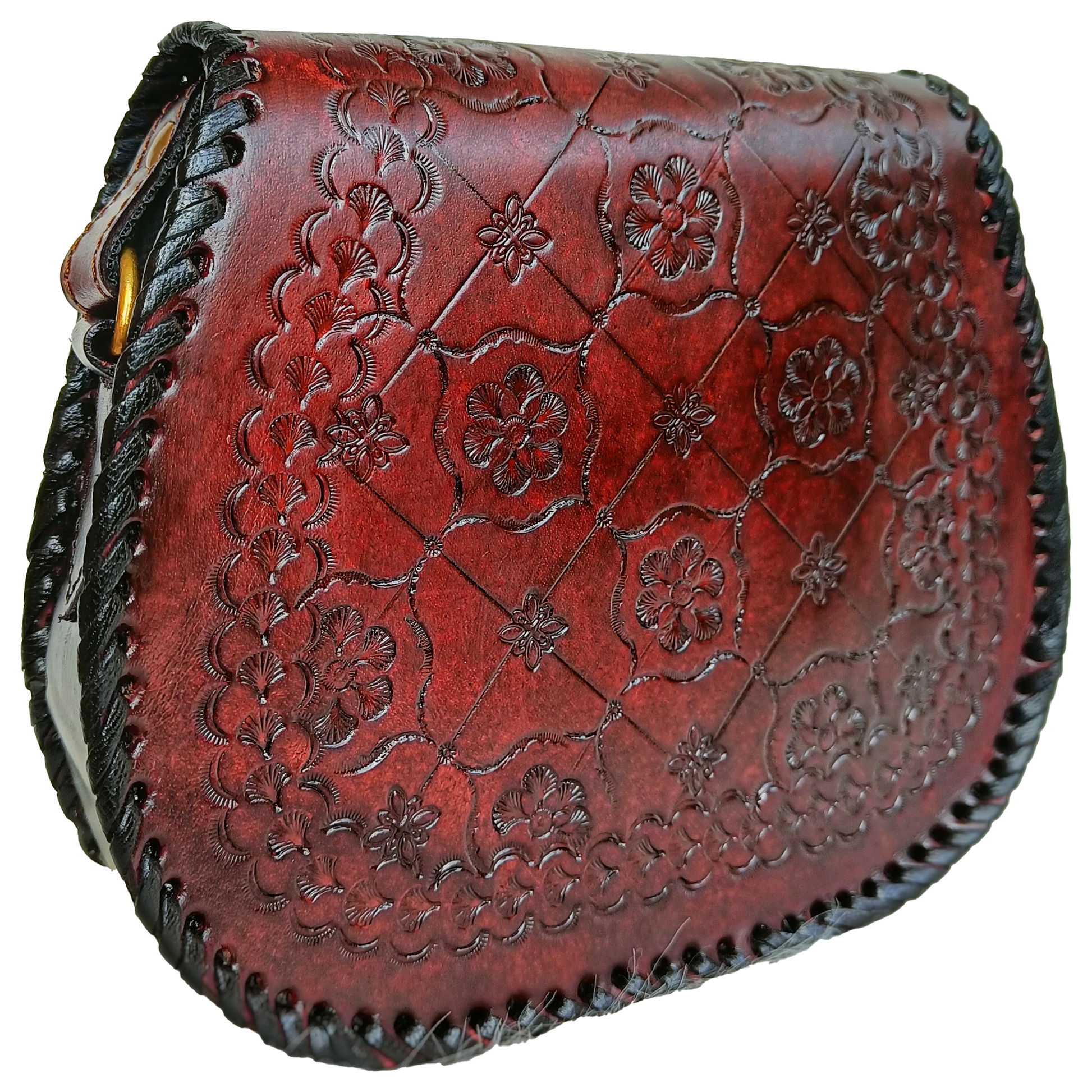 Burgundy Crossbody Handcarved Leather Sling Bag