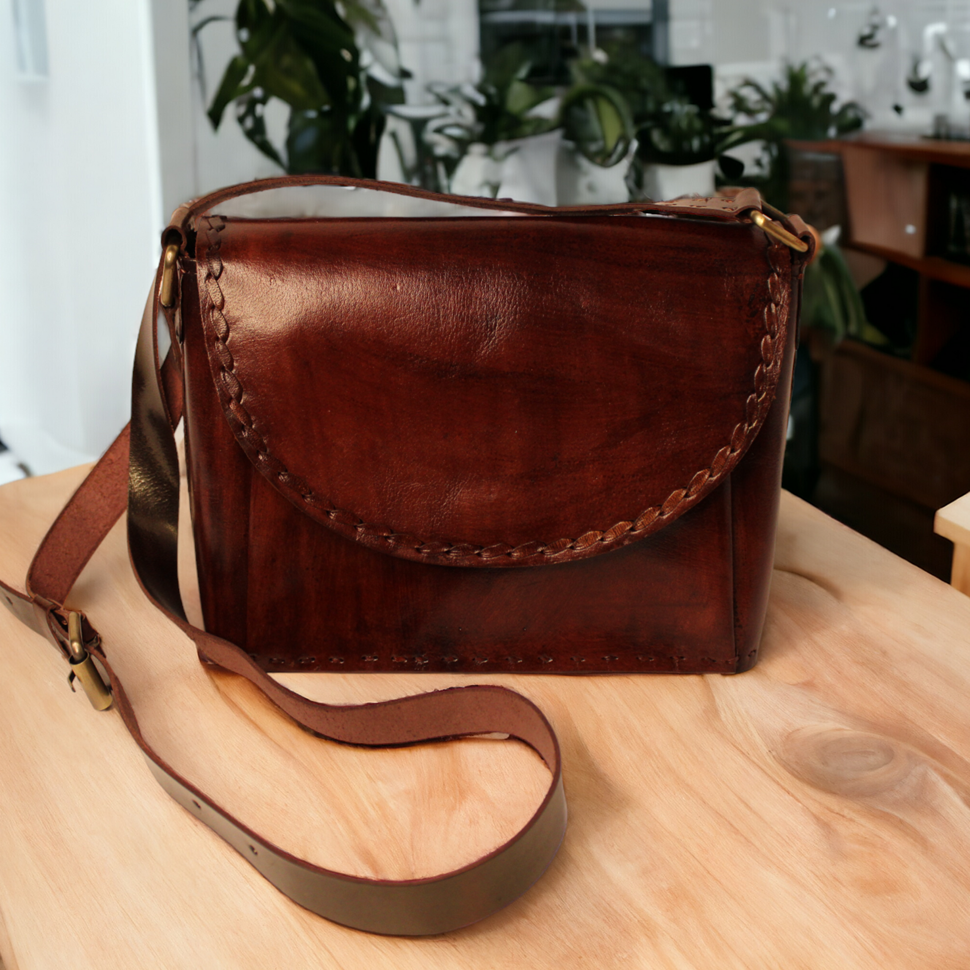 Cherry Brown Classic Box - Leather Sling Bag