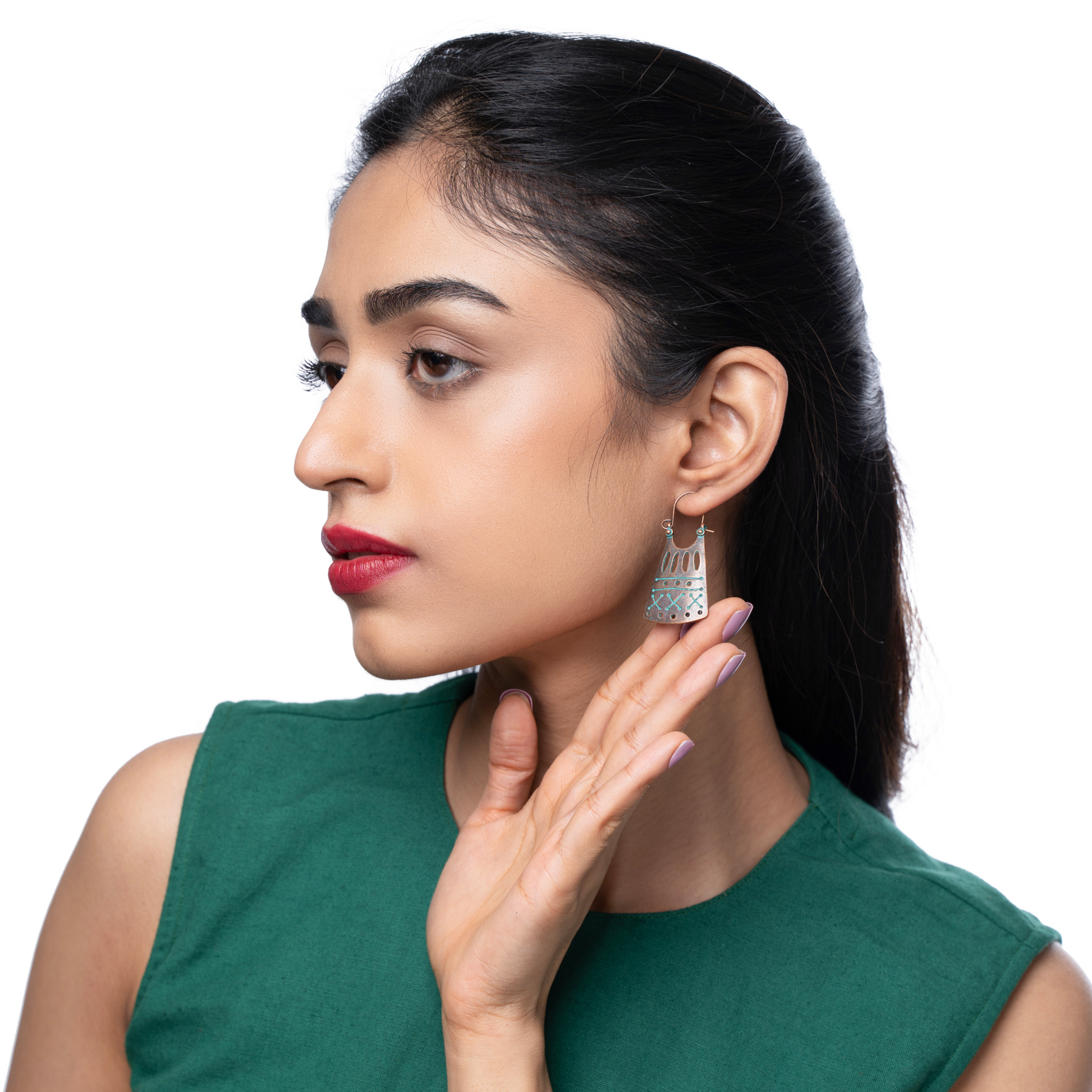 Geometric patterned box Antique Turquoise Bronze Alloy earring