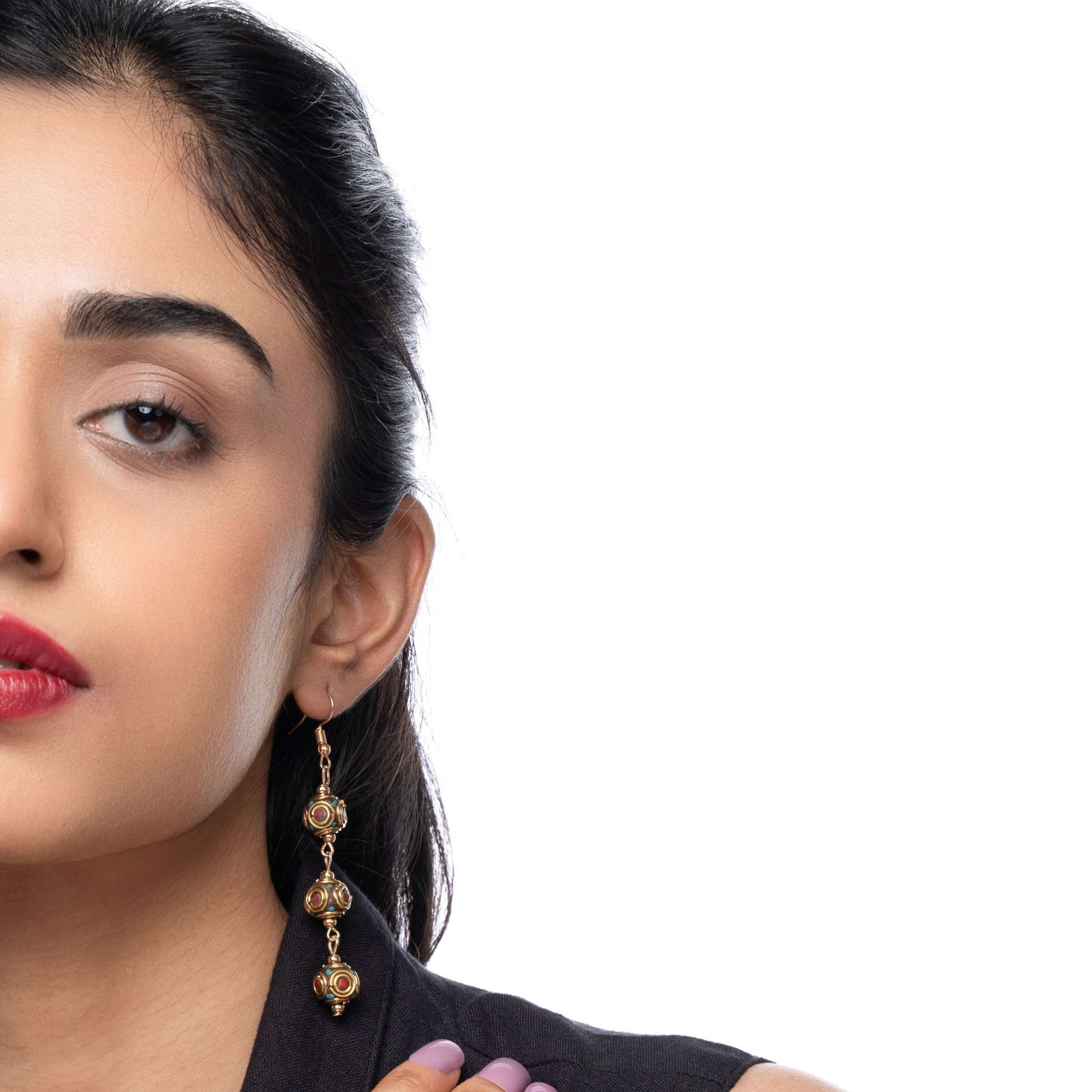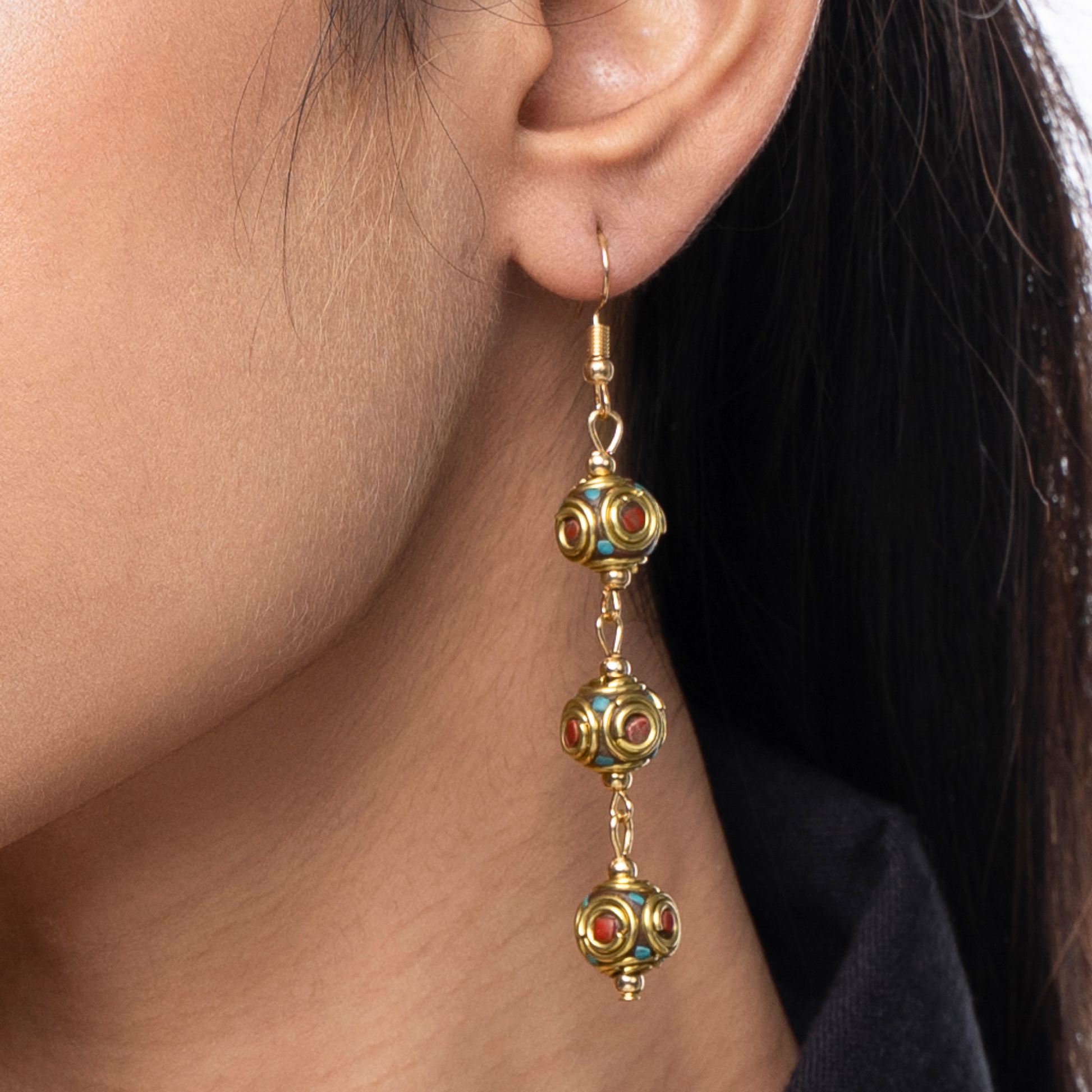 Original Nepal Boho Tibetan Ethnic Pendant Earrings Indian Stone Copper Dangle Earrings
