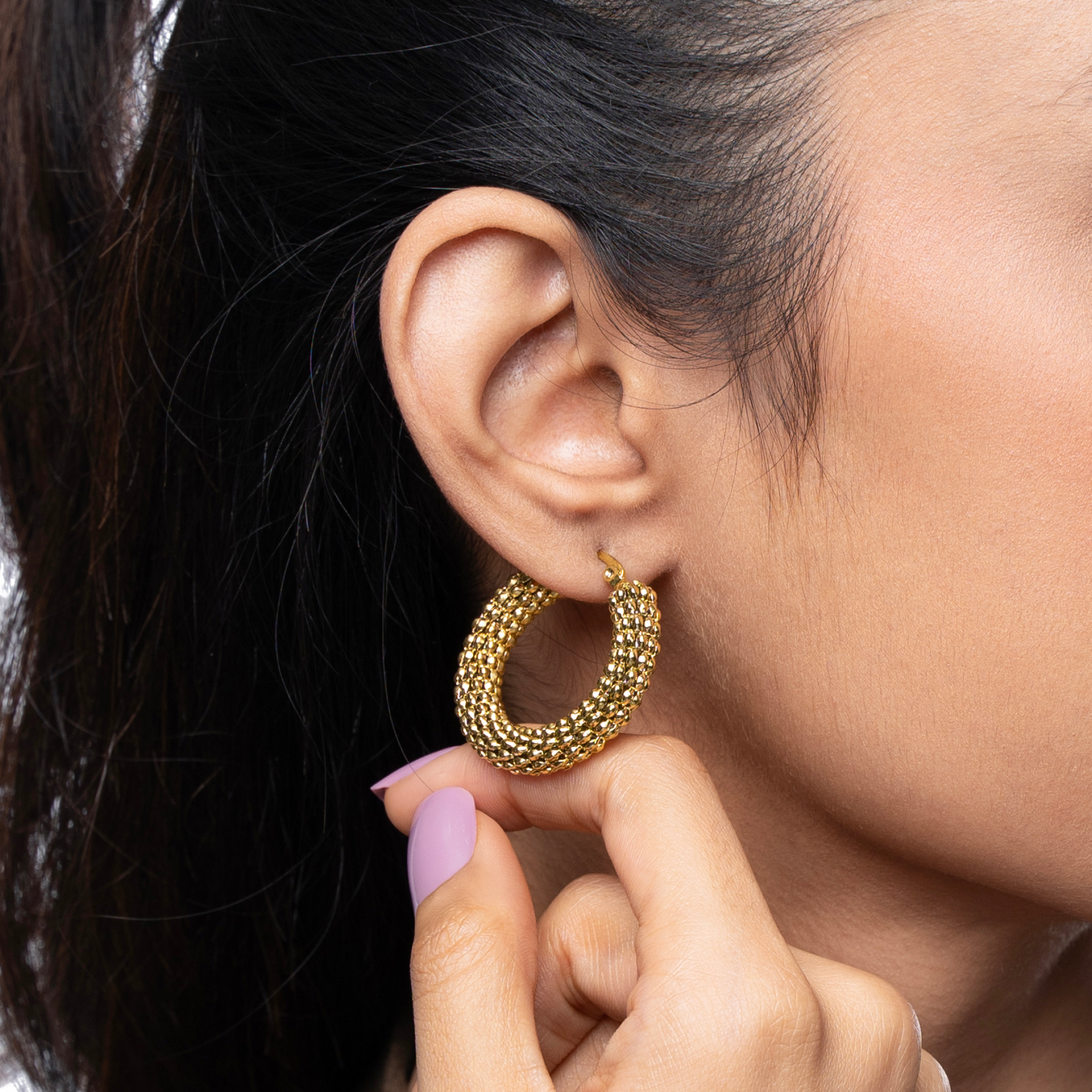 Classic Textured Anti-Tarnish Hoop Earrings