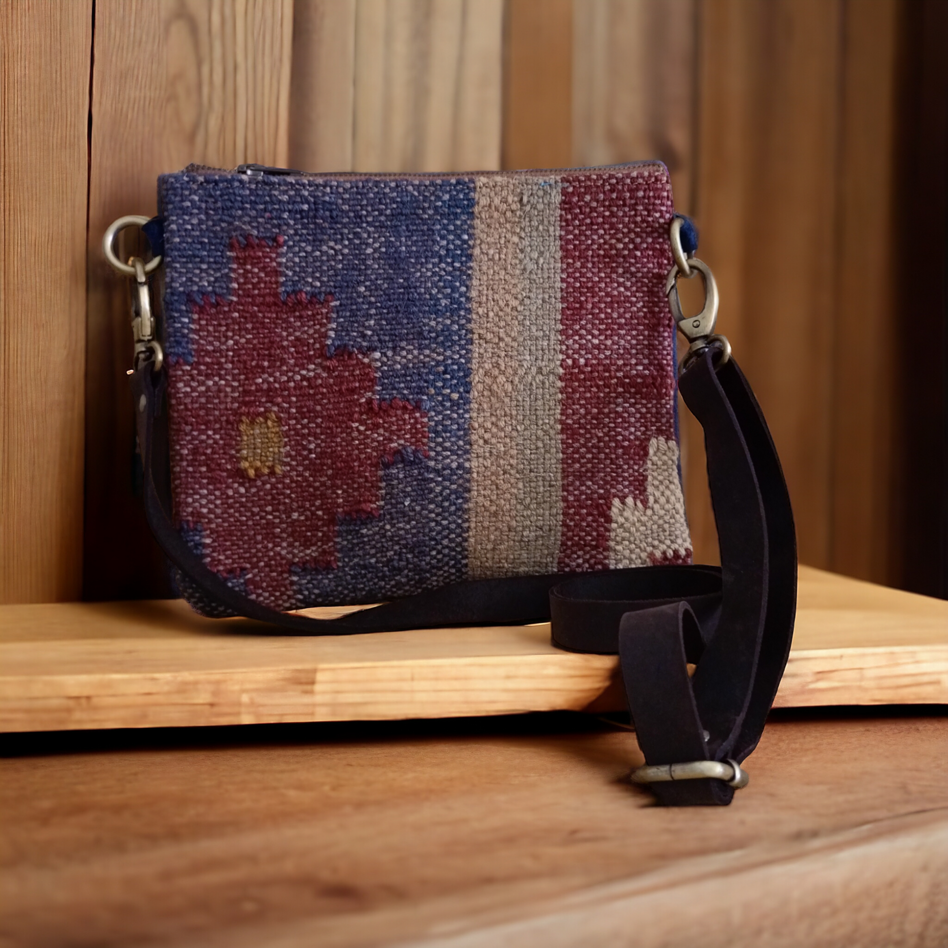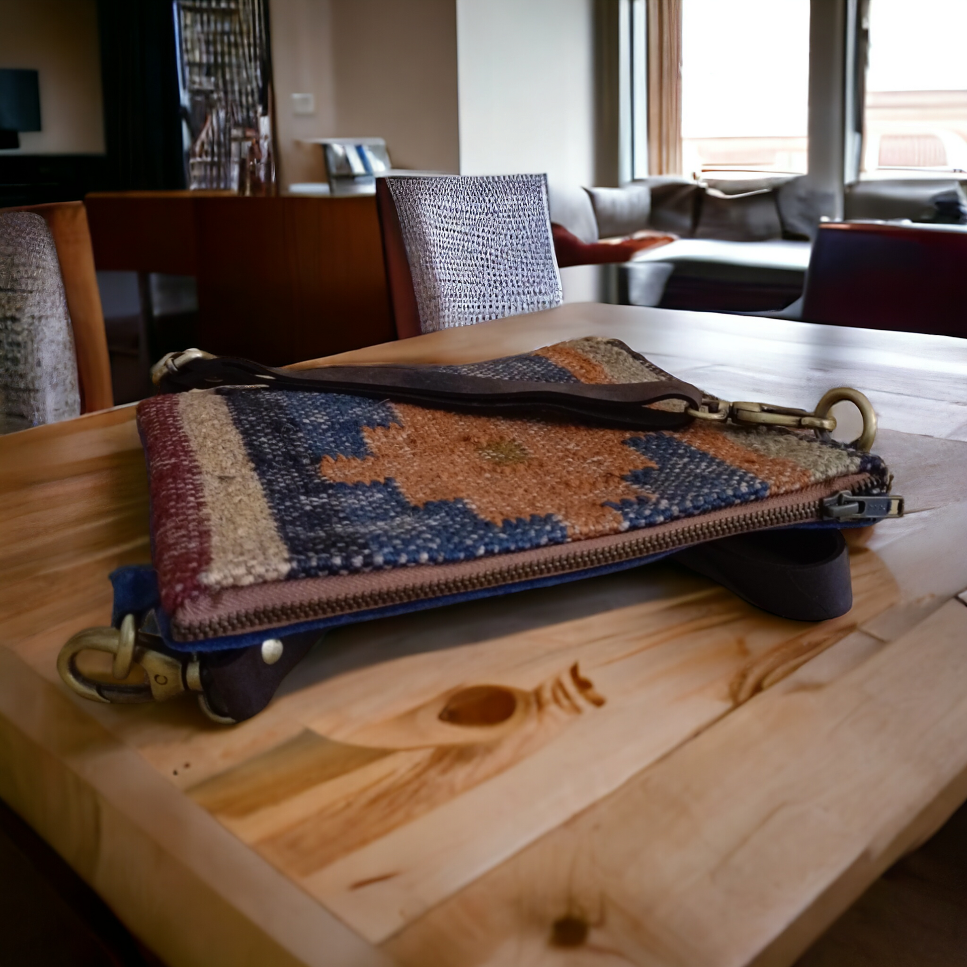 - The bag is sleek and perfect for your everyday chores. The colorful geometric pattern design weaved on jute rug and finished in leather will never go out of style and makes it a 'must have' in your wardrobe.