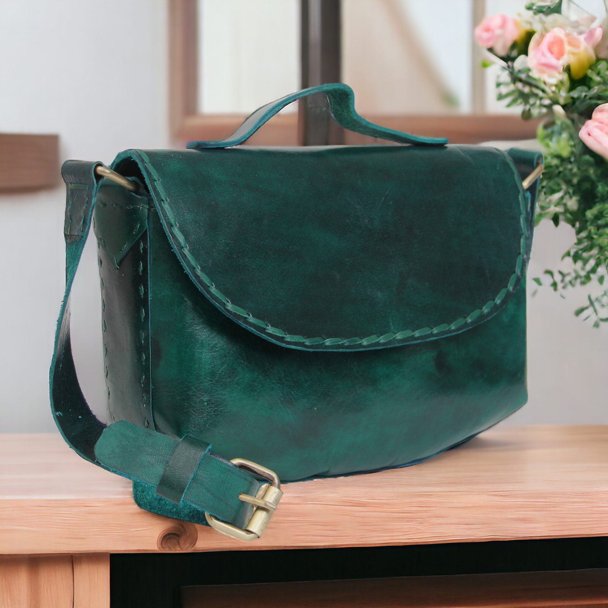 All the bags are handcrafted by our artisans; who have been practicing this art for generations as a means of their livelihood. Each bag is a unique piece in itself. As the bag is made of genuine leather (animal skin), you may come across some wrinkles or difference in the uniformity of color across the bag. Each piece of leather is shaped, punched, stitched and tanned or polished by hand. Thus, they retain their original texture even after the manual processing due to which wrinkles and color variations may be seen across the bags. The irregularities or imperfections in color or embellishment are the result of human involvement in the process which adds charm to the finished product. Please note, we take pride in the originality of our products and appreciate that each bag reflects a character that's unique to itself.