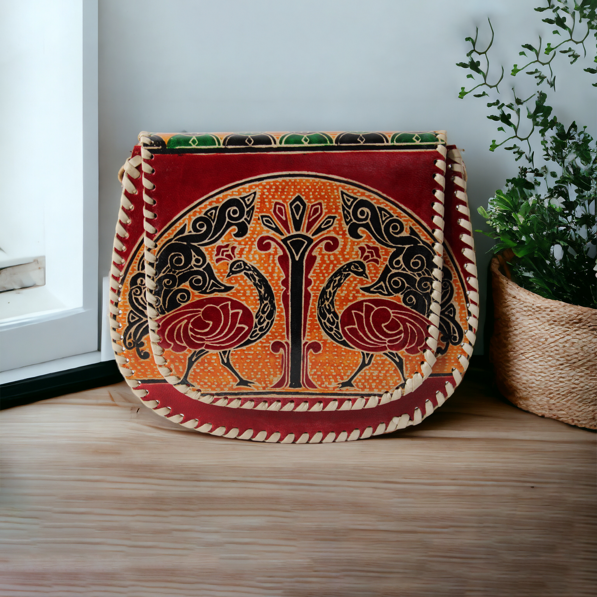 All the bags are handcrafted by our artisans; who have been practicing this art for generations as a means of their livelihood. Each bag is a unique piece in itself. As the bag is made of genuine leather (animal skin), you may come across some wrinkles or difference in the uniformity of color across the bag. Each piece of leather is shaped, punched, stitched and tanned or polished by hand. Thus, they retain their original texture even after the manual processing due to which wrinkles and color variations may be seen across the bags. The irregularities or imperfections in color or embellishment are the result of human involvement in the process which adds charm to the finished product. Please note, we take pride in the originality of our products and appreciate that each bag reflects a character that's unique to itself.