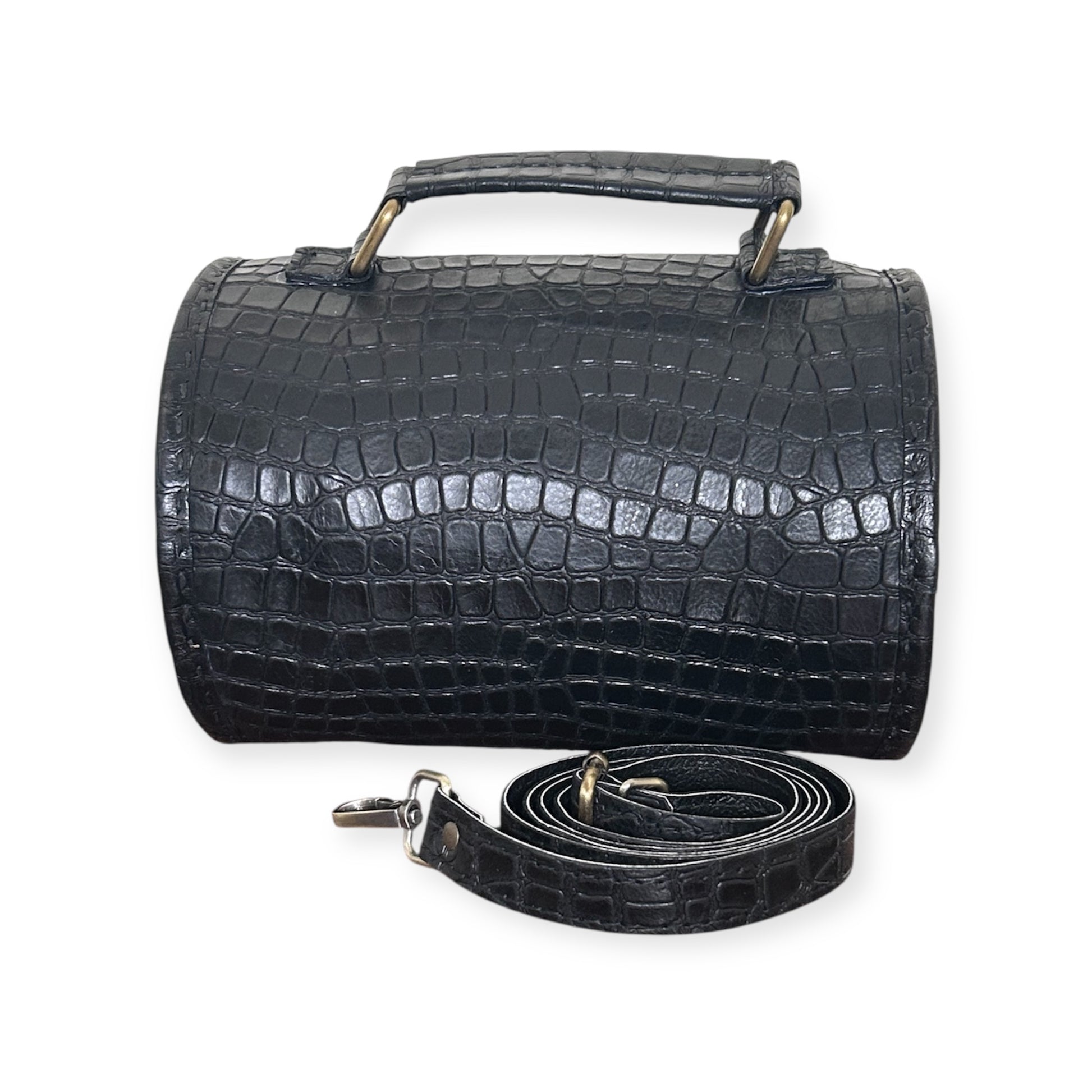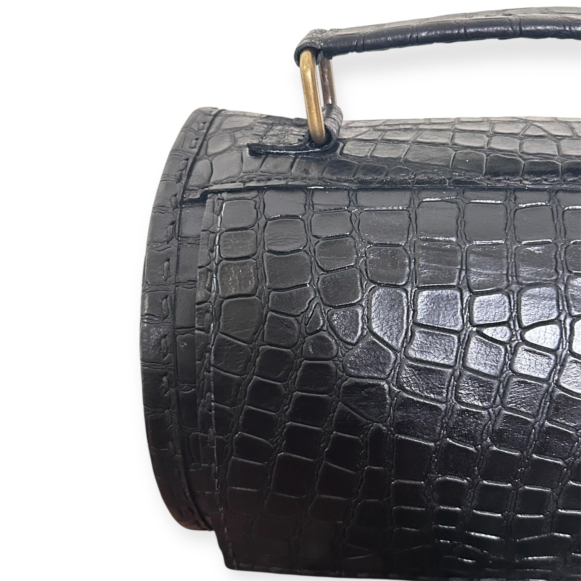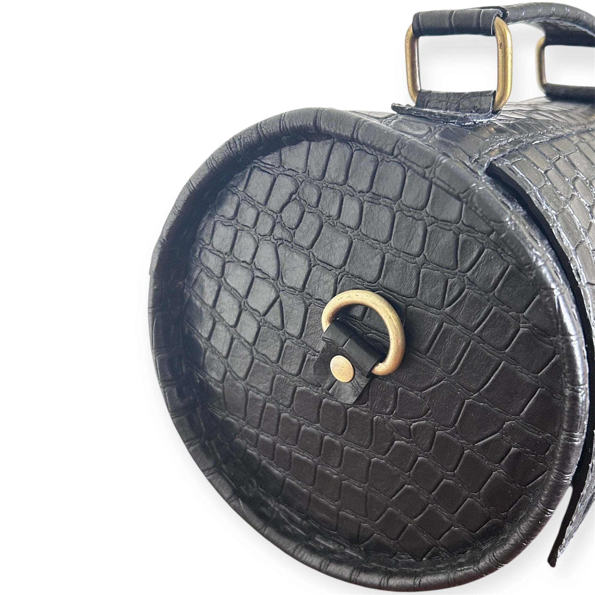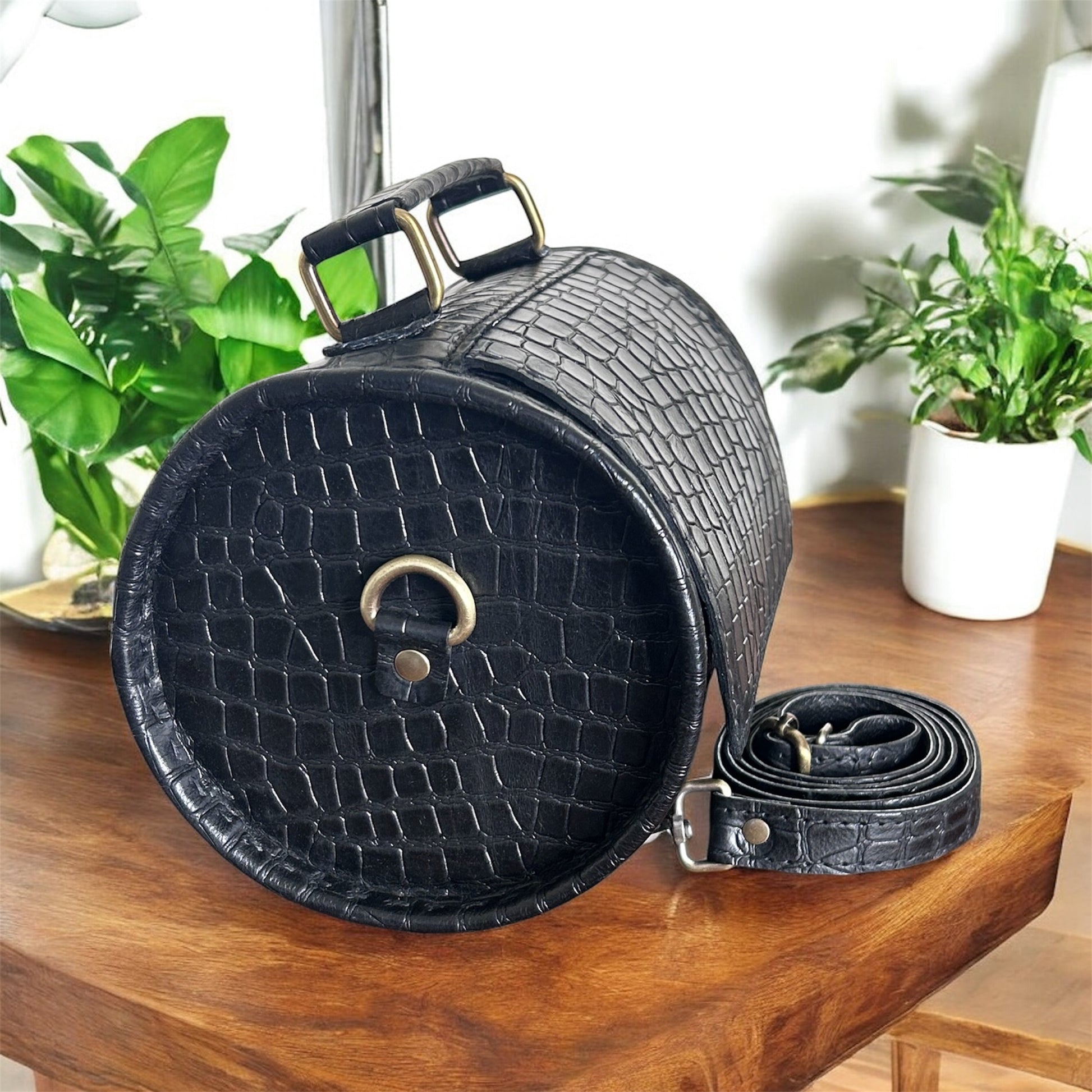 - The bag is cute and perfect for everyday wear. The beautiful black colored croc leather with block printed ajrakh mashru lining on the inside giving the bag a classy and distinctive look.